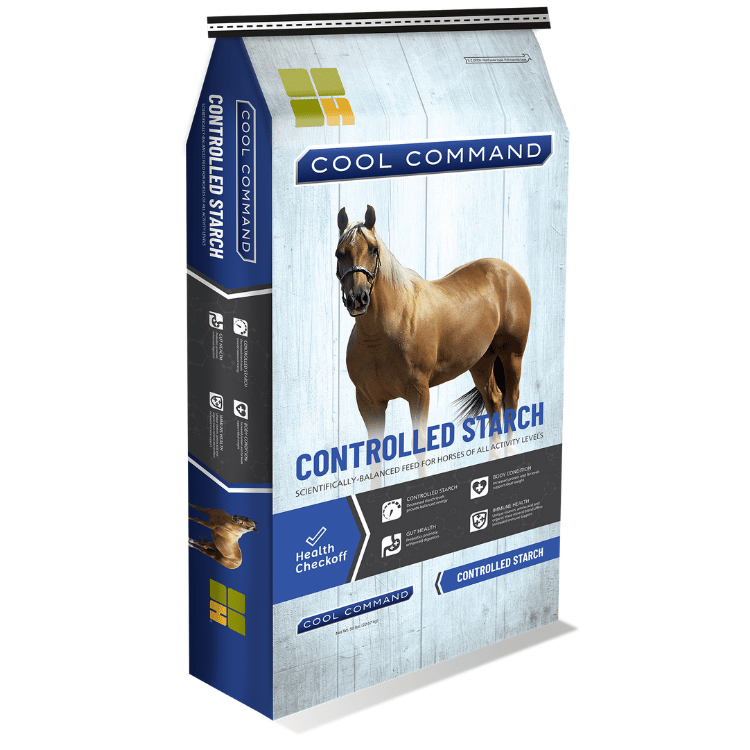 Horse feeds made with decreased levels of carbohydrates are often a great option for horses with metabolic-related concerns. Cool Command® Controlled Starch contains the optimal level of protein, mineral and vitamin fortification to meet the specific nutrient demands of your horse without the addition of extra carbohydrates. Energy levels are instead maintained via plant oils.