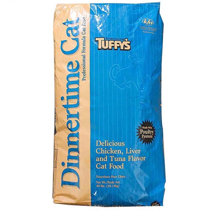 Dinnertime Cat Food contains the essential balance of vitamins and minerals that cats require. Supplemented with taurine to assure your cat's best health, every morsel of this flavorful meal contains the flavors your cat loves -- chicken, liver and tuna.